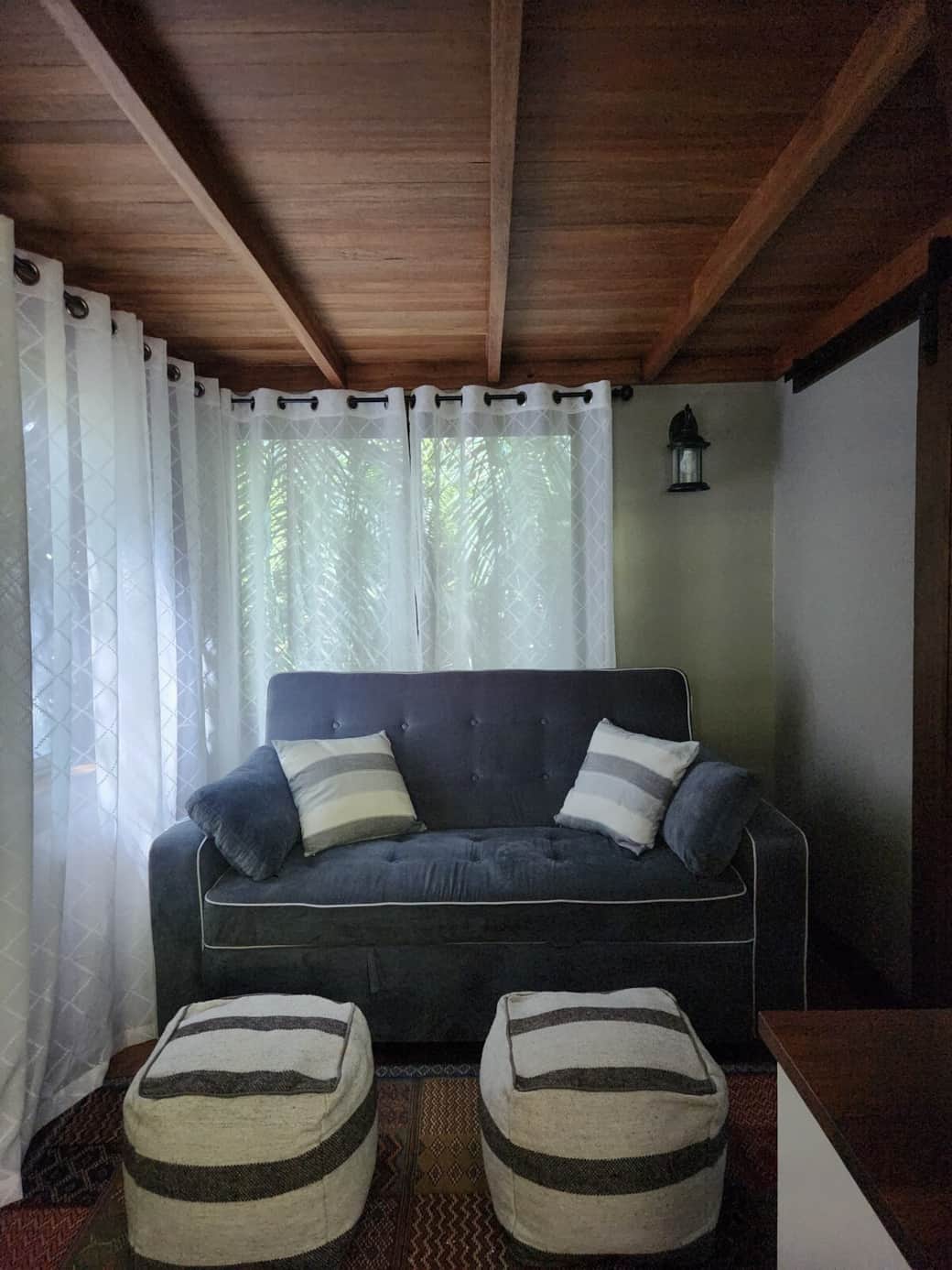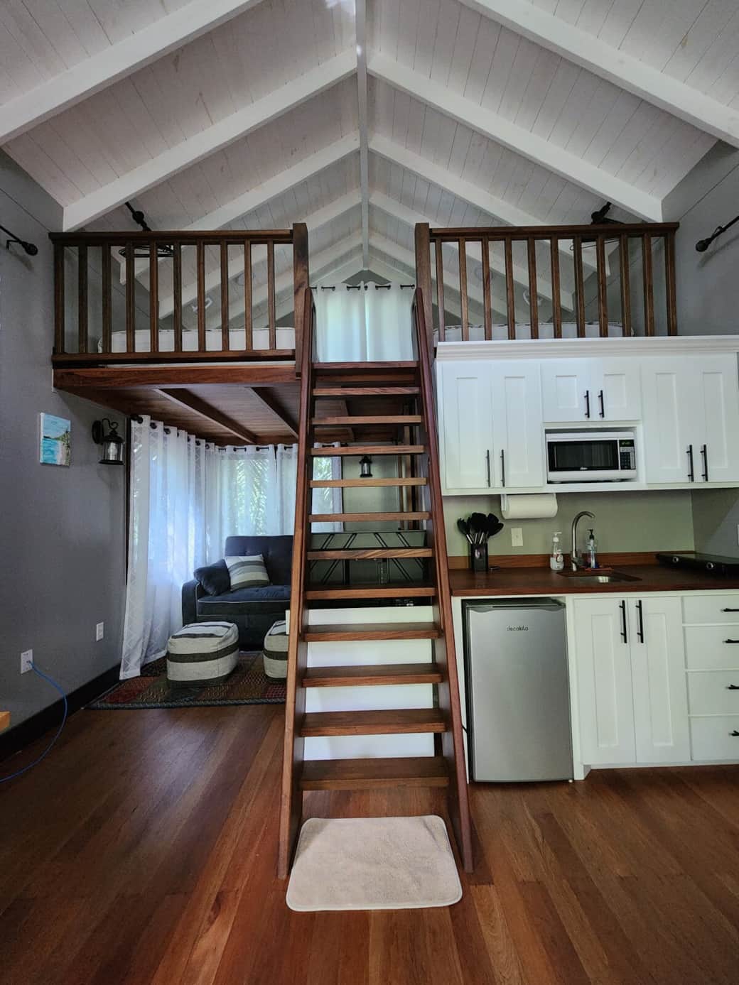 Our Belize jungle treehouse blends comfort with nature, offering a loft with two queen beds, a pull-out couch that converts into a full-size bed, and a large desk for work and TV. Enjoy a full bathroom with a spacious shower, a kitchenette with a sink, mini fridge, cooktop, and coffee maker. The screened-in porch lets you listen to the creek and enjoy wildlife, all while being just minutes from the vibrant community of Spanish Lookout. Perfect for adventurers and nature lovers.